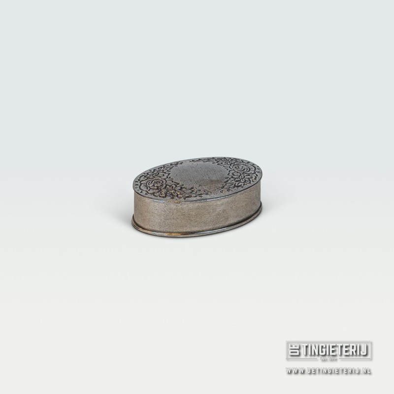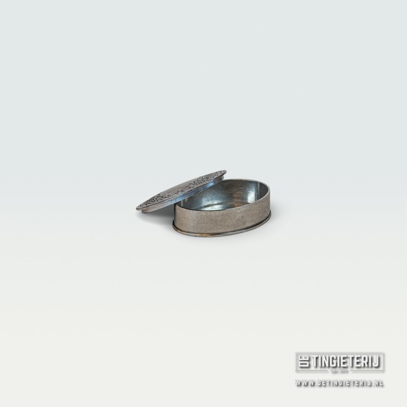 Eine schicke ovale Schachtel mit einem Blumenmuster oben. Diese Box eignet sich zum Speichern einer (symbolischen) Menge Asche und / oder des persönlichen Gedächtnisses.