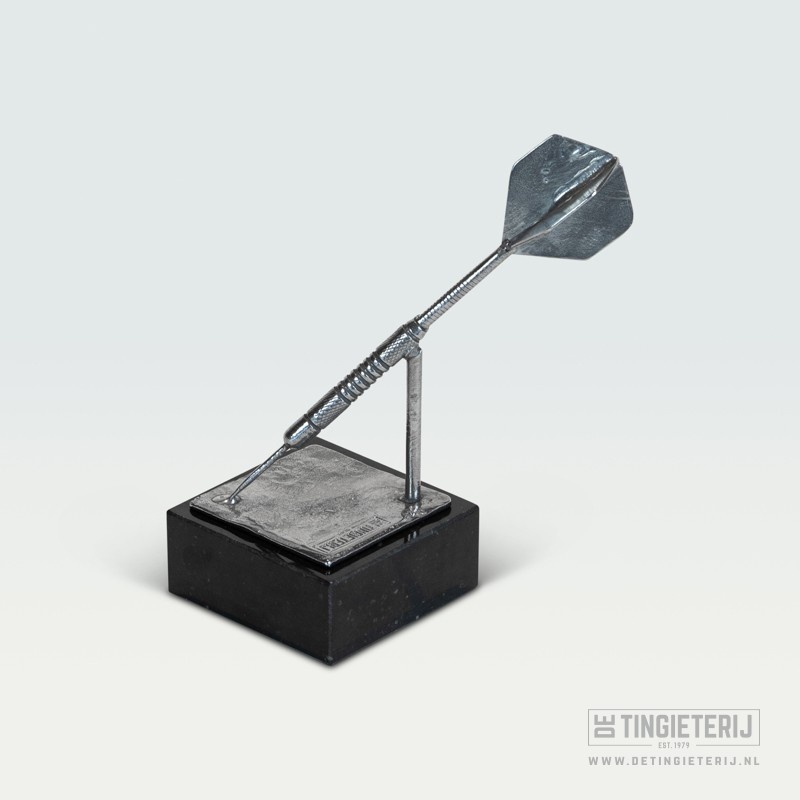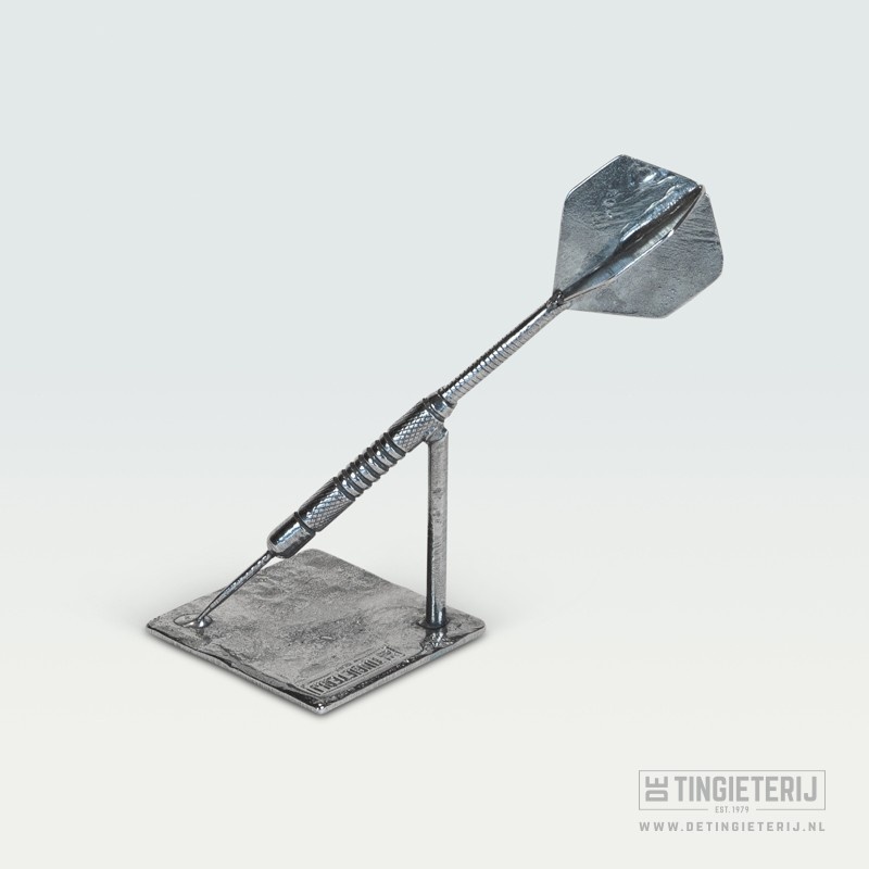 Uniek sculptuur van een tinnen dartpijl, uitgevoerd op ware grote! Een mooie herinnering aan een speciale wedstrijd of als prijs voor een darttoernooi. Handgemaakt in onze gieterij en voorzien van een certificaat van echtheid. Lees meer