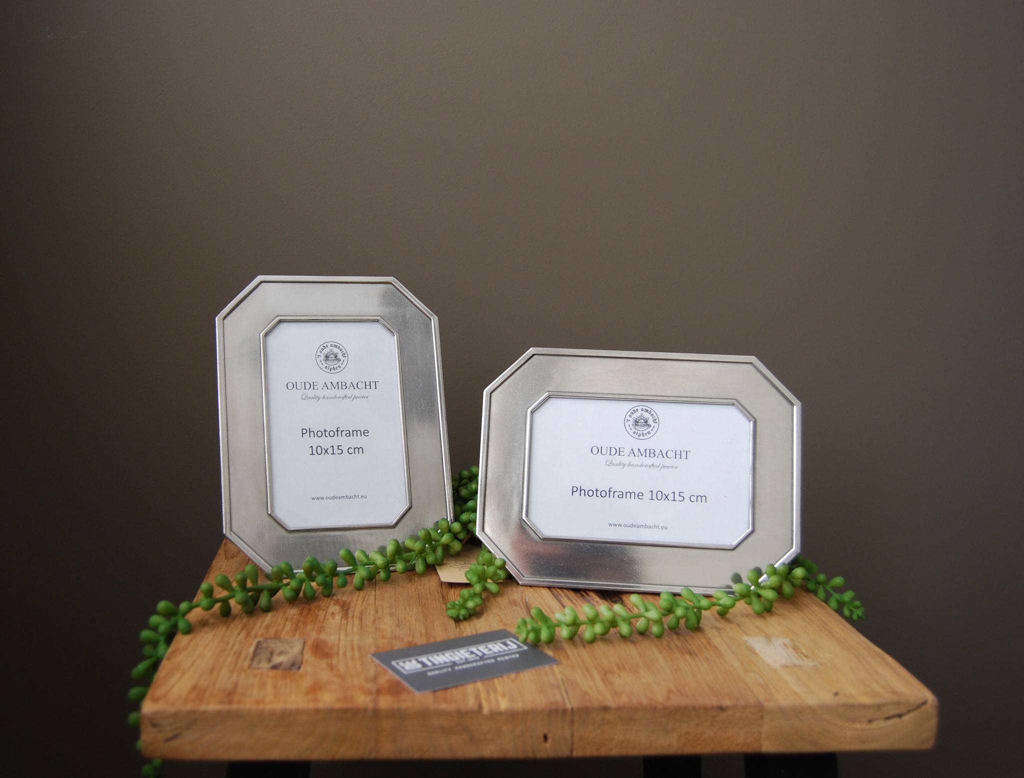 Prachtige tinnen fotolijst, met een stijlvolle strakke rand. De lijst kan zowel staand als liggend worden geplaatst.