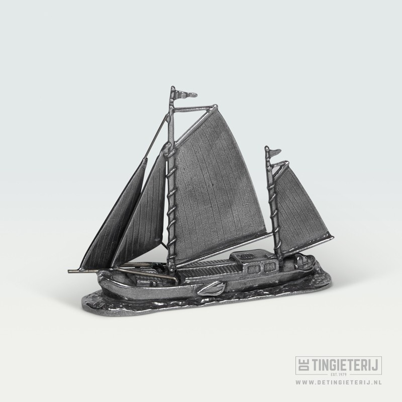 Dit tinnen beeld Klipper is een eerbetoon aan de klassieke zeilvaart en maritieme geschiedenis. De klipper staat bekend om zijn snelheid en elegante lijnenspel, en werd vroeger veel gebruikt voor handel en transport over zee. In dit beeld komen vakmanschap, avontuur en nautische traditie prachtig samen.