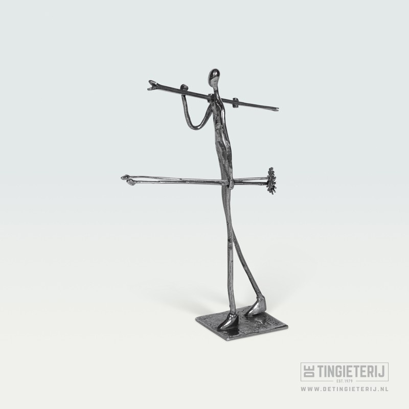 Deze tinnen skiër is een moderne interpretatie van wintersport en beweging. Het slanke silhouet en de lange lijnen geven het beeld een dynamische uitstraling. Een uniek cadeau voor de wintersporter of als trofee voor Skiwedstrijden. Lees meer